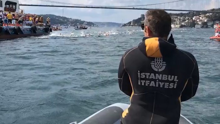 33. Boğaziçi Kıtalararası Yüzme Yarışması esnasında suya atlayan Rus sporcu kısa süre sonra fenalaştı. Baygınlık geçiren Rus yüzücüyü itfaiye ekipleri kurtardı. Rus sporcunun kurtarılma anları ise kameraya yansıdı.