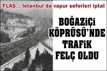 İstanbul'da hayat durdu. Boğaziçi Köprüsü'nde metrobüs köprü çıkışında yolda kaldı. Kaza nedeniyle köprüdeki ulaşım da aksıyor. Metrobüsler buzlanma yüzünden zaman zaman duruyor.. Ulaşım konrollü olarak sağlanıyor. Vatandaşlar metrobüsten inerek köprüyü yürüyerek geçmek zorunda kalıyor. Karayolları denetiminde olan köprülere İstanbul Büyükşehir Belediyesi de müdahale ediyor. Şehirhatları vapur seferleri iptal edildi.