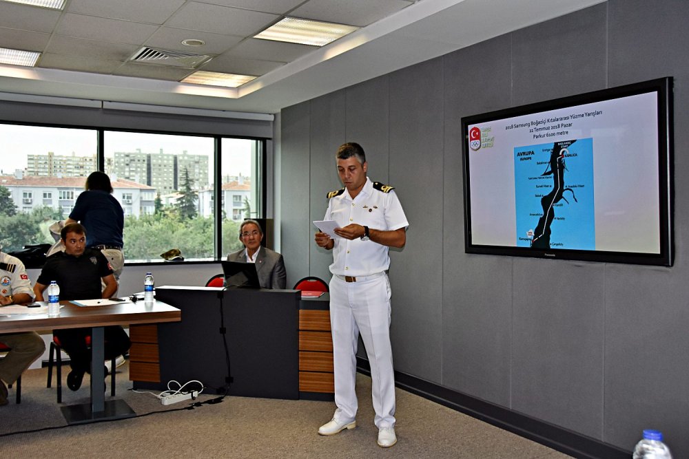 22 Temmuz 2018 tarihinde düzenlenecek 30. Samsung Boğaziçi Kıtalararası Yüzme Yarışı teknik koordinasyon ve güvenlik toplantısı bugün (11 Temmuz 2018) Olimpiyatevi’nde gerçekleştirildi. Toplantıya TMOK Başkan Yardımcısı ve Organizasyon Komitesi Başkanı Nihat Usta, Başkan Yardımcısı Gürsel Şen, Samsung Boğaziçi Kıtalararası Yüzme Yarışı Komodoru Cahit İstikbal, Sahil Güvenlik Yüzbaşı Serhat Özdemir, Komisyon Üyesi Celal Porsun ile ilgili birimlerin yetkilileri katıldı.