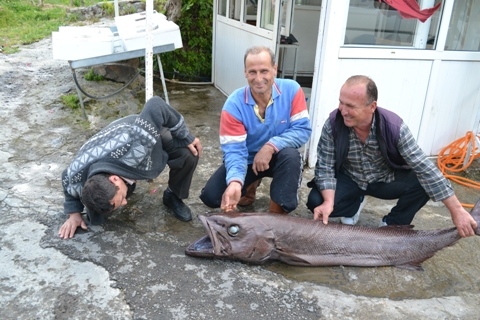 "Balığın boyu 1 metre 80 santim. Kilosu ise 30 kilo. Akdeniz’de ilk defa karşılaştığımız bu balığın derisinde pul yerine dikenler mevcut. Dişleri ise testere biçiminde, sırtında ise yelesi var. Gözleri ise camgöze benziyor. Ne cins olduğunu bilemedik. Belki geni ile oynanmış bir balık cinsi olabilir" şeklinde konuştu.
