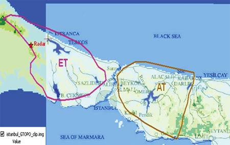 - Resimde, Asya deneme alanı (AT) ve Avrupa deneme alanı (ET) geçici haritaları. Çizgi içine alınmış olan yerler çalışmanın yürütüleceği alanları gösteriyor.