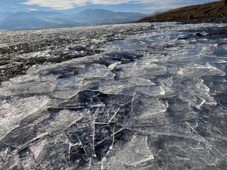 Gölün üzerini kaplayan buz tabakası, sabah başlayıp öğle saatlerine kadar etkili olan şiddetli rüzgarda parçalandı. Rüzgar gölün yüzeyindeki buz parçalarını sahile taşıdı. Sahil kenarındaki buz parçaları üzerinde gezen Canılgın Uzunkaya, gece gölün yüzeyini kaplayan buzların rüzgarın etkisiyle parçalandığını söyledi.