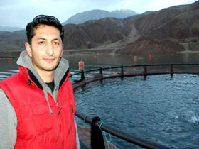 Suşehri ilçesindeki Çamlıgöze Baraj Gölü΄nde kafeslerde alabalık üretimi yapılıyor.