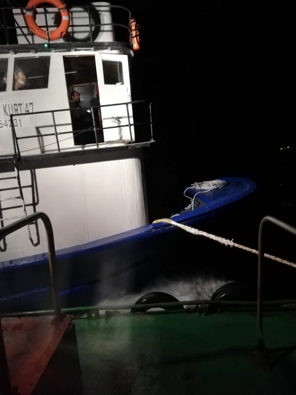 İçerisinde 3 kişi bulunduğu belirtilen 14 metre boyundaki teknenin KEGM'e ait PİLOT-62 botu ile yedeklenerek Mehmetçik Bot İstasyonu’na emniyetle bağlandığı açıklandı.
