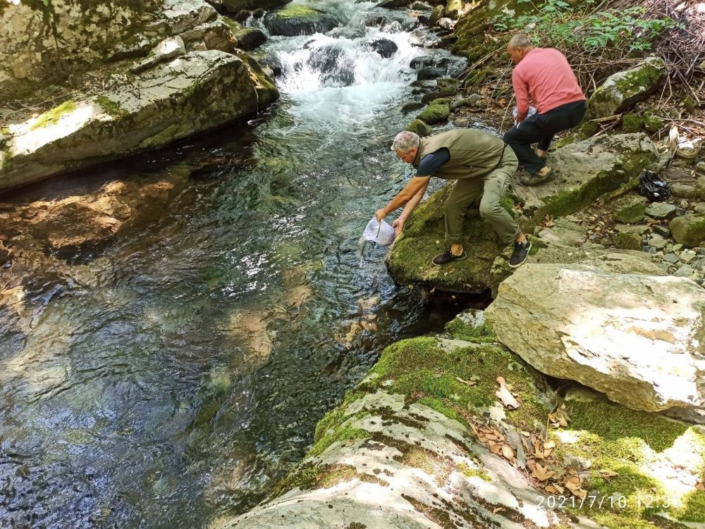Çanakkale'de doğal alabalık üretimi ve suların balıklandırılması proje kapsamında Bayramiç Kazdağları mevkindeki derelere 8 bin adet yavru kırmızı benekli alabalık salındı.