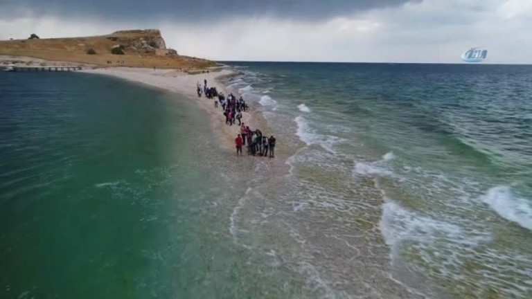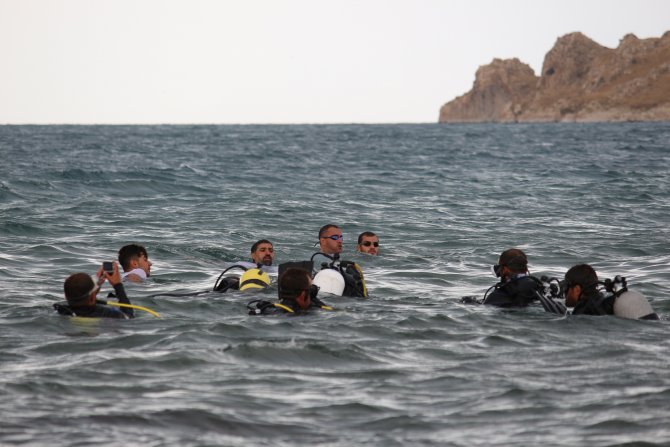 Van Gölü'ndeki dört büyük adadan biri olan Çarpanak Adası'na antik yoldan su altı yürüyüşü yapıldı.