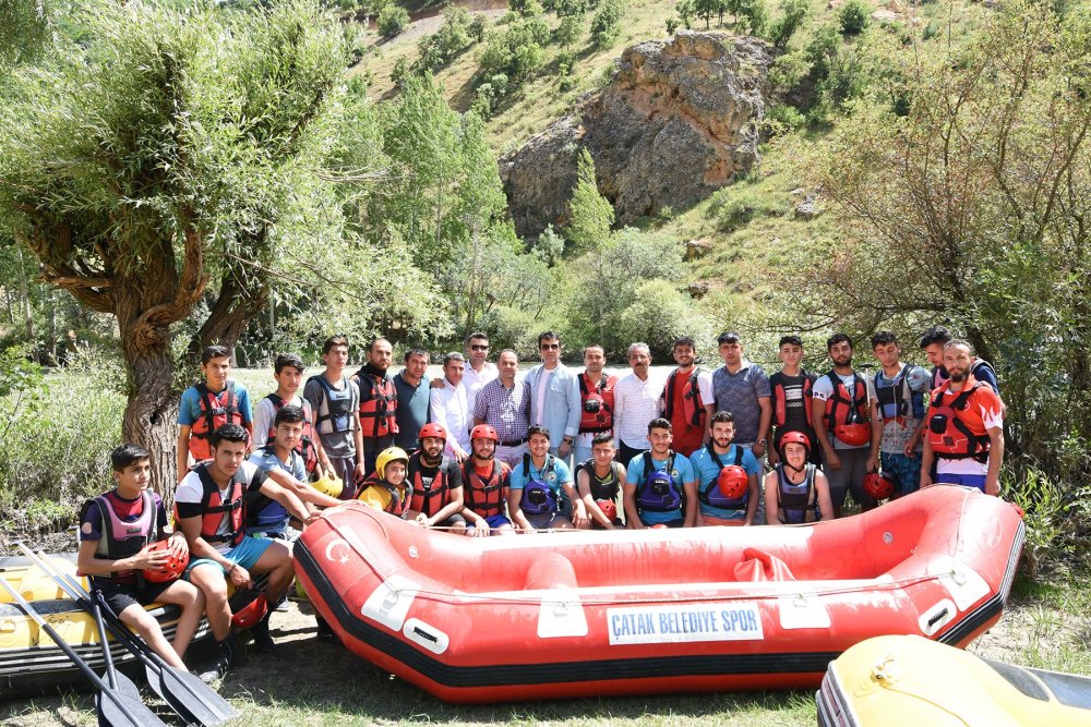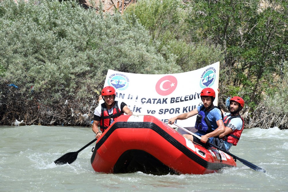 Çatak Belediye Başkanı Abdurrahman Şeylan tarafından verilen start ile rafting sezonu açılışı gerçekleştirildi. Karların erimesi, yağmur yağışların son bulması ve havaların ısınması ile debisi yüksek olan Çatak Çayı’nda bir tutku haline gelen rafting sporunun, sporseverleri ile buluştuğunu belirten Belediye Başkanı Abdurrahman Şeylan, “Çatak artık terörle değil doğası ve rafting sporu ile anılıyor. Geçen yıl Türkiye Rafting Şampiyonası ilçemizde yapıldı. Bu tür organizasyonların devamını sağlamak için belediye olarak çalışmalarımız devam ediyor. Çatak birçok sportif faaliyetin gerçekleştirilebileceği doğa harikası saklı bir bahçe. Bizim için yağmur ve kar çok önemli. Yağış ne kadar olursa insanlar daha çok tercih ediyor. Bu sene de ilçemiz çok fazla yağış aldı. Hava çok güzel, suyun debisi de muhteşem. Tam rafting havası yaşıyoruz. Adrenalin tutkunlarını, rafting yapmak isteyen, sıcaklardan bunalan herkesi ve tüm Çataklı vatandaşlarımızı, rafting yapmaya ve ilçemizi gezmeye davet ediyorum” dedi.
