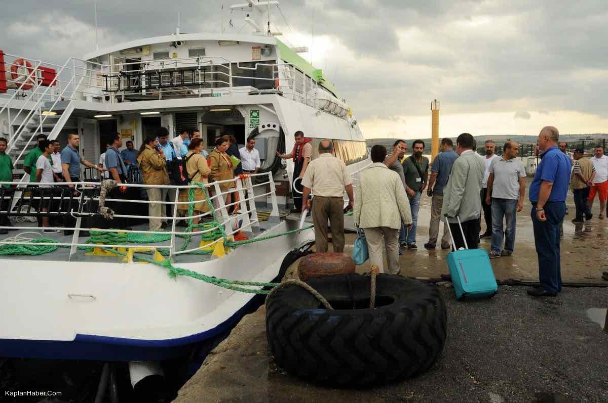 "Louis Cristal" isimli gemiden GESTAŞ AŞ'ye ait "Conkbayırı" deniz otobüsüne alınan yolcular, Gelibolu İskelesi'ne getirildi. Burada bagaj kontrolü yapan yolcular, ardından iskeledeki kafeteryalarda bir süre istirahat etti.