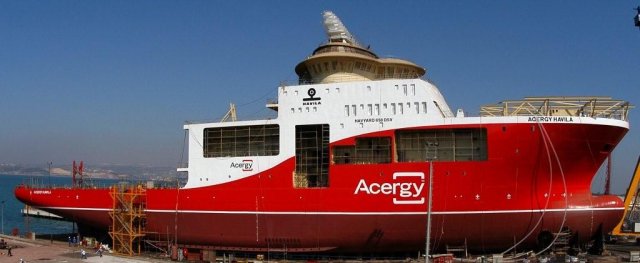 Cemre Tersanesi'nde Norveç Havyard Group için inxa edilen DSV Acergy Havila isimli dalış destek gemisinin denize indirilme töreninden sonra gemi Norveç'e yedeklendi.