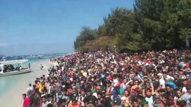 Endonezya’nın doğusundaki Lombok Adası’nda meydana gelen 7 büyüklüğündeki depremde hayatını kaybedenlerin sayısının 347’ye yükseldiği bildirildi. Ulusal Afet Yönetim Ajansı (BNPB) Sözcüsü Sutopo Purwo Nugroho depremde bin 477 kişinin de yaralandığını, bölge genelinde 156 binden fazla kişinin güvenli alanlara tahliye edildiğini açıkladı. Lombok’a komşu Gili adalarından botlarla alınmak için sahilde bekleyen kalabalık objektiflere yansıdı.
