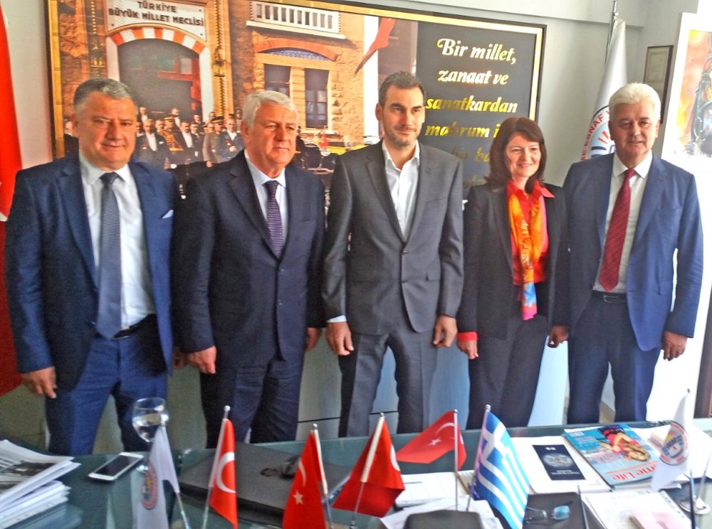 Çeşme Esnaf Odası Başkanı Osman Köfüncü - İzmir Esnaf Odası Başkanı Zekeriya Mutlu, Sakız Belediye Başkan Yardımcısı Dimitris Karalis, İzmir Başkonsolosu Argyro Papoulia ve Çeşme Belediye Başkanı Muhittin Dalgıç