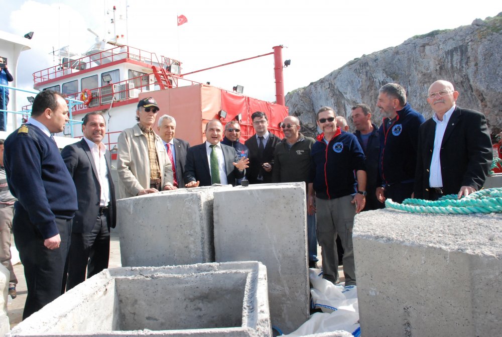 Hazırlanan yaklaşık 50 beton blok, Kaymakam Mustafa Erkayıran, İMEAK Deniz Ticaret Odası İzmir Şubesi Yönetim Kurulu Başkanı Yusuf Öztürk, DTO Meclis Üyeleri Ahmet Subay ve Meslek Komitesi Üyesi Köksal Hantal, E. Koramiral Ekmel Totrakan, Çeşme Liman Başkanı Nihat Tozman, DTO İzmir Şube Müdürü Halil Hatipoğlu, İlçe Gıda ve Tarım Müdürü Ümit Alkoç tarafından Karaada açıklarına atıldı.
