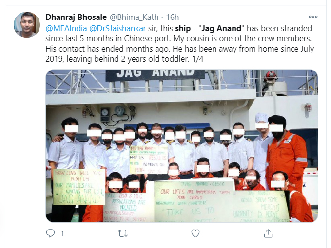 Hindistan Ulusal Denizciler Sendikası (NUSI), insani krizi vurgulamak için Uluslararası Denizcilik Örgütü'ne (IMO) ve Çin makamlarına 10.000 e-posta mesajının gönderilmesini istiyor. Sendikanın çabası ve mahsur kalan denizcilerin aile üyelerinin de dikkatleri denizde mahsur kalan mürettebat üyelerine çekmesiyle olay sosyal medyada yankı uyandırdı.