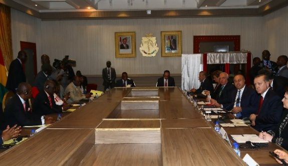 Cumhurbaşkanı Recep Tayyip Erdoğan, Batı Afrika ziyaretinin son durağı olan Gine’de temaslarına devam ediyor. Erdoğan, temasları kapsamında Gine Devlet Başkanı Alpha Conde ile heyetler arası görüşmeye başkanlık etti. Öte yandan Erdoğan’a Grand Croix Şeref Madalyası takdim edildi.