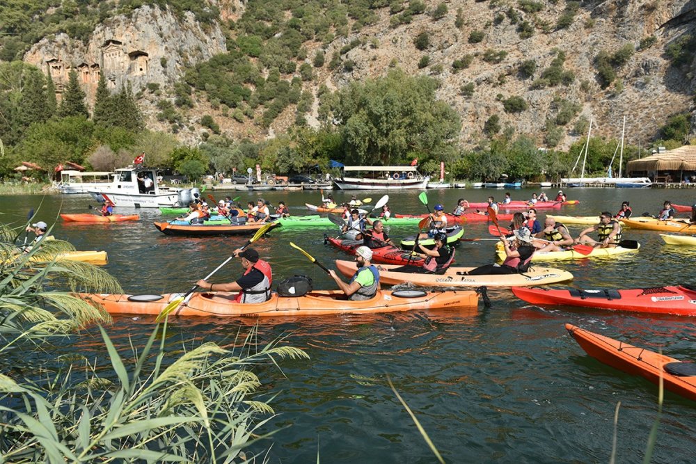 Köyceğiz ve Dalyan'da faaliyet gösteren sivil toplum kuruluşlarının "Kaptan June Şükran Geçişi" çağrısıyla bir araya gelen 100 kanocu Dalyan Kanalı'nda görsel şölen oluşturdu. Ömrünü doğa koruma mücadelesine adayan "Kaptan June" için bir araya gelen doğa dostu sporcular sabah saatlerinde Dalyan Kanalı'nda buluştu.