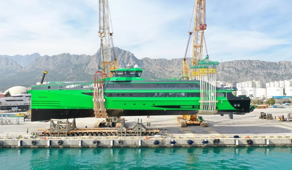 Antalya Serbest Bölge’de faaliyet gösteren Damen Tersanesi devrim niteliğindeki Hızlı Mürettebat Tedarik gemisi (FCS) 7011'i Antalya’da suya indirdi.