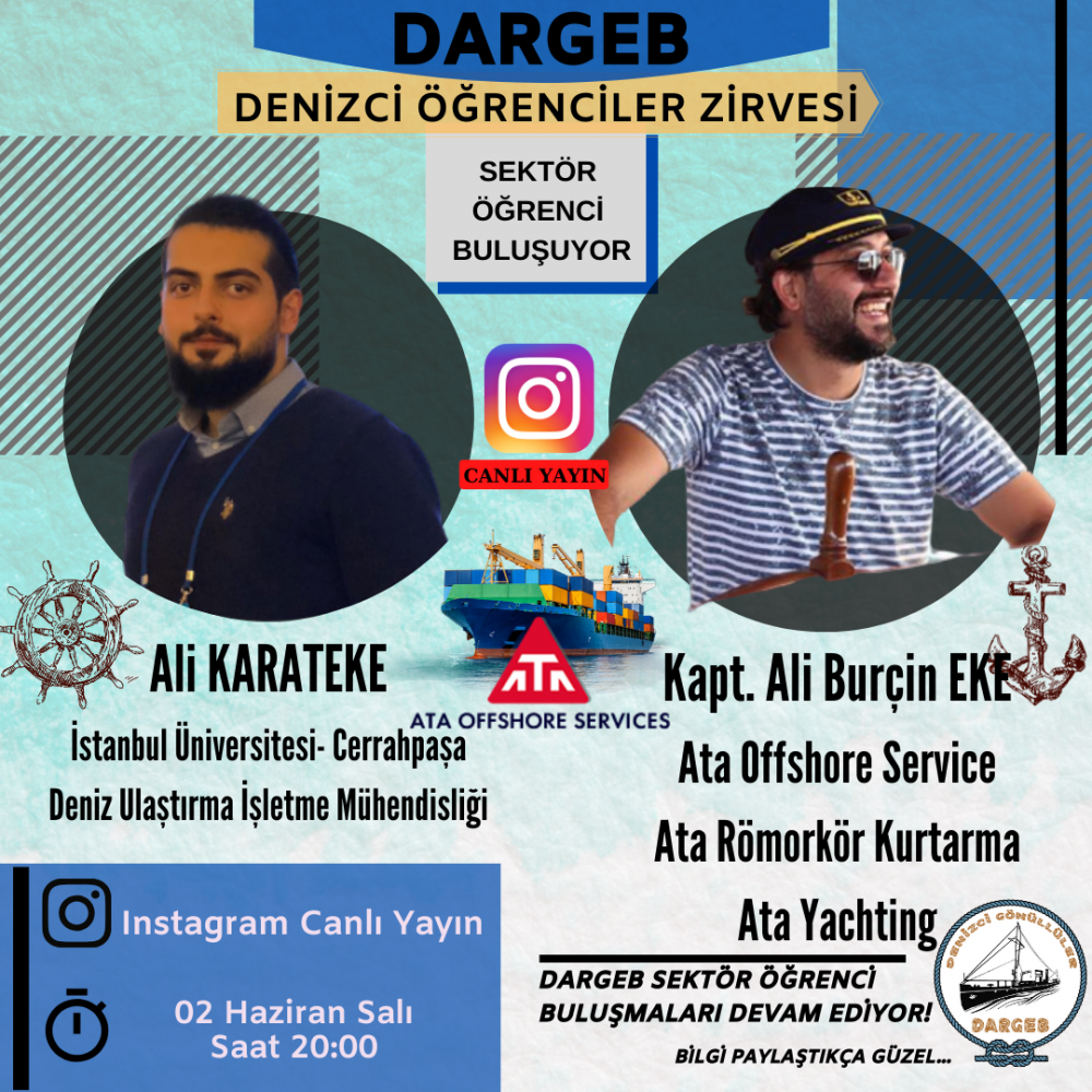 DARGEB-denizci öğrenciler ,bir ilki gerçekleştirerek sadece öğrencilerin editörlüğünde insagramda denizcilik sektöründen kişiler ile canlı yayın gerçekleştiriyorlar. 28 Mayıs-05 Haziran 2020 tarihleri arasında saat:20.00 da öğrencileri sorularını canlı yayında sorma fırsatı buluyor.Sırası ile canlı yayınlara