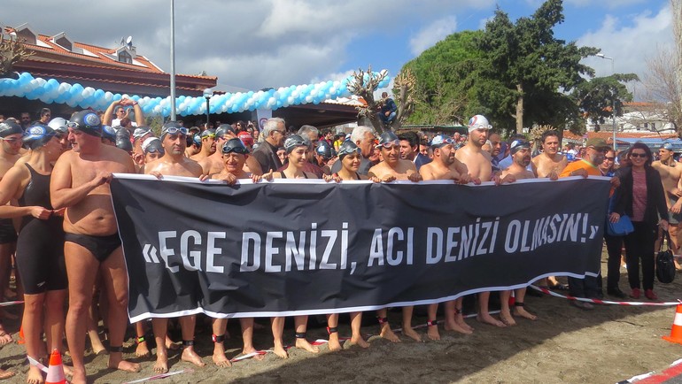 MUĞLA’nın Datça İlçesi’nde her yıl düzenlenen, Türkiye’nin ilk ve tek Açık Deniz Kış Yüzme Maratonu bu yıl 10’uncu kez ’Ege Denizi acıların denizi olmasın’ temasıyla yapıldı.