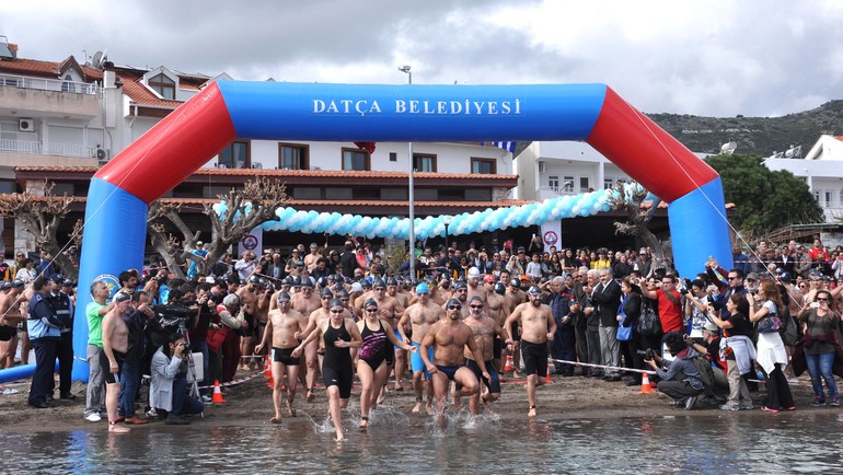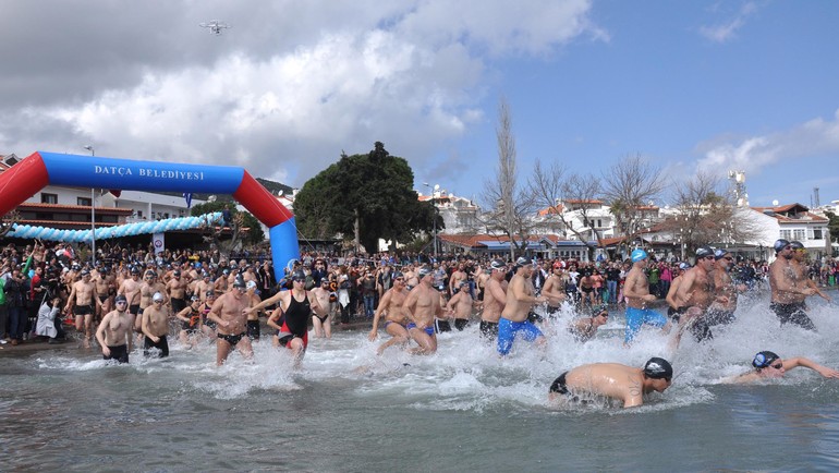 Türkiye’nin ilk ve tek açık deniz kış yüzme maratonu, Datça Belediyesi’nin organizasyonunda Muğla Büyükşehir Belediyesi, Muğla Ticaret ve Sanayi Odası (MUTSO) ve gönüllülerin katkıları ile ilçe merkezindeki Kumluk Plajı’nda, 309 sporcunun katılımıyla 10’uncu kez gerçekleştirildi.