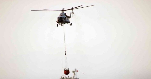 Jandarma Skorsky helikopterlerinin yanında 1 amfibik CL-215, 1 Antonov-32 tanker uçak ve 3 adet Air Tracktor yangın söndürme uçağı olmak üzere yoğun duman kaplı alanlara su atıyor.