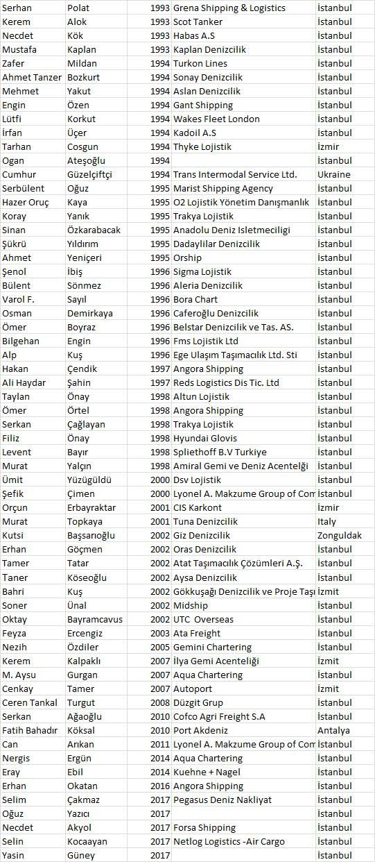 Organizasyonu Angora Denizcilik ve Ticaret ltd firmasından 1997 Mezunu Hakan ÇENDİK ve 1998 Mezunu Ömer ÖRTEL, Aqua Chartering LTD firmasından 2007 Mezunu Melike Aysu GÜRHAN ve Nergis ERGÜN tarafından yapılmış olup. Moderatörlüğünü ilk mezunlardan Grena Denizcilik ve Lojistik firmasından 1993 Mezunu Serhan Polat ve DEFMED Başkanı Orçun ERBAYRAKTAR yapmıştır.