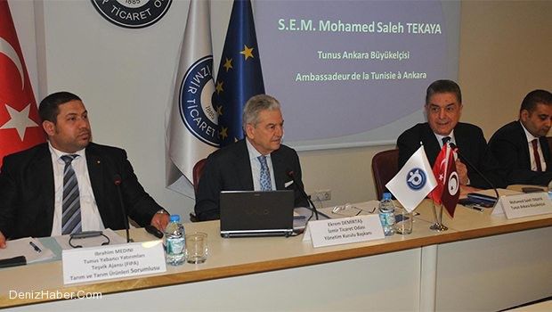 Tunus Ankara Büyükelçisi Mohamed Saleh Tekaya ve beraberindeki heyetin katılımıyla, İzmir Ticaret Odası'nda (İTO) Tunus Gıda ve Tarım Sektörleri Tanıtım toplantısı gerçekleştirildi. Toplantıda konuşan İTO Yönetim Kurulu Başkanı Ekrem Demirtaş, tarihten gelen ortaklıkların ticaret ortaklığı ile pekiştirilmesini istedi.