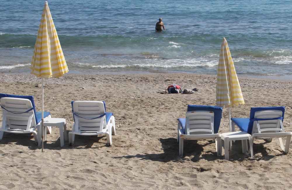 Deniz kaplumbağasının şezlonglar arasındaki yumurtlama çabası