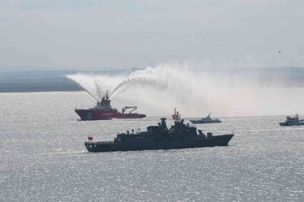 18 Mart Şehitleri Anma Günü ve Deniz Zaferi'nin 107'nci yıl dönümü törenleri sonrasında Çanakkale Boğazı açıklarında Deniz Kuvvetleri Komutanlığına ait gemiler resmi geçit törenine katıldı.