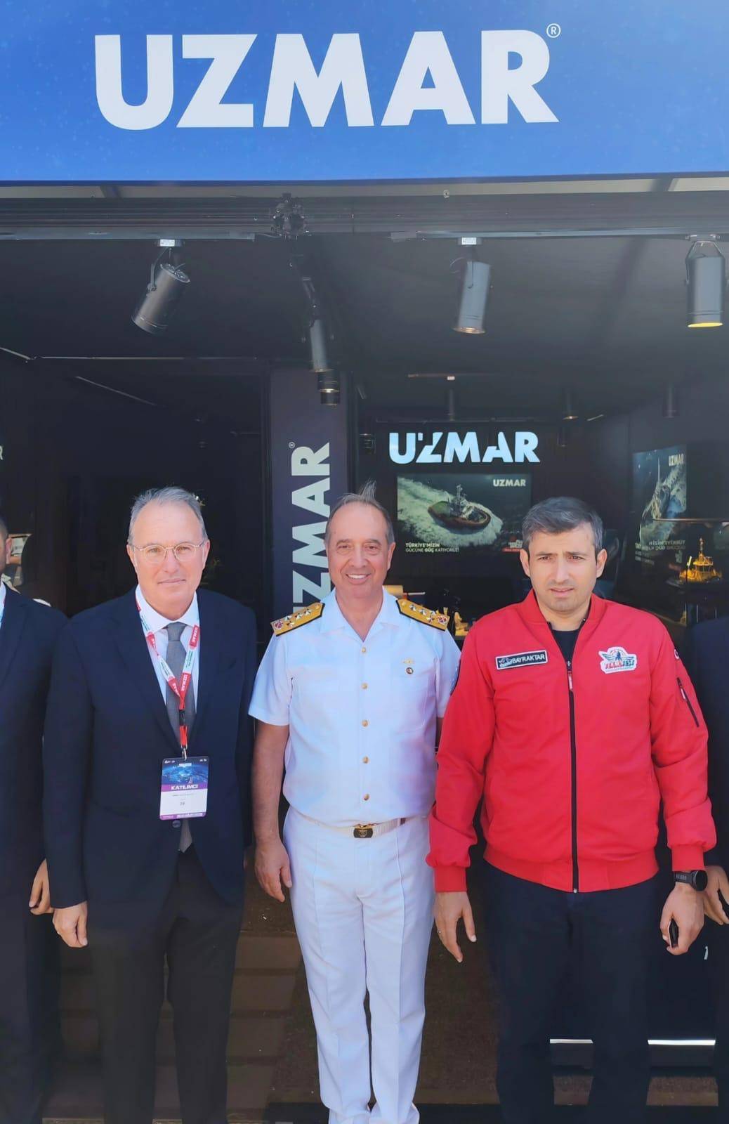 Deniz Kuvvetleri Komutanı Oramiral Ercüment Tatlıoğlu, İstanbul Tersanesi Komutanlığında 30-31 Ağustos 2025 tarihleri arasında düzenlenen TEKNOFEST 2025 Mavi Vatan etkinliği kapsamında UZMAR standını ziyaret etti. Ziyarette ev sahipliğini Uzmar Tersanesi Yönetim Kurulu Başkanı Ahmet Noyan Altuğ yaparken, Baykar Yönetim Kurulu Başkanı ve TEKNOFEST Yönetim Kurulu Başkanı Selçuk Bayraktar da hazır bulundu.