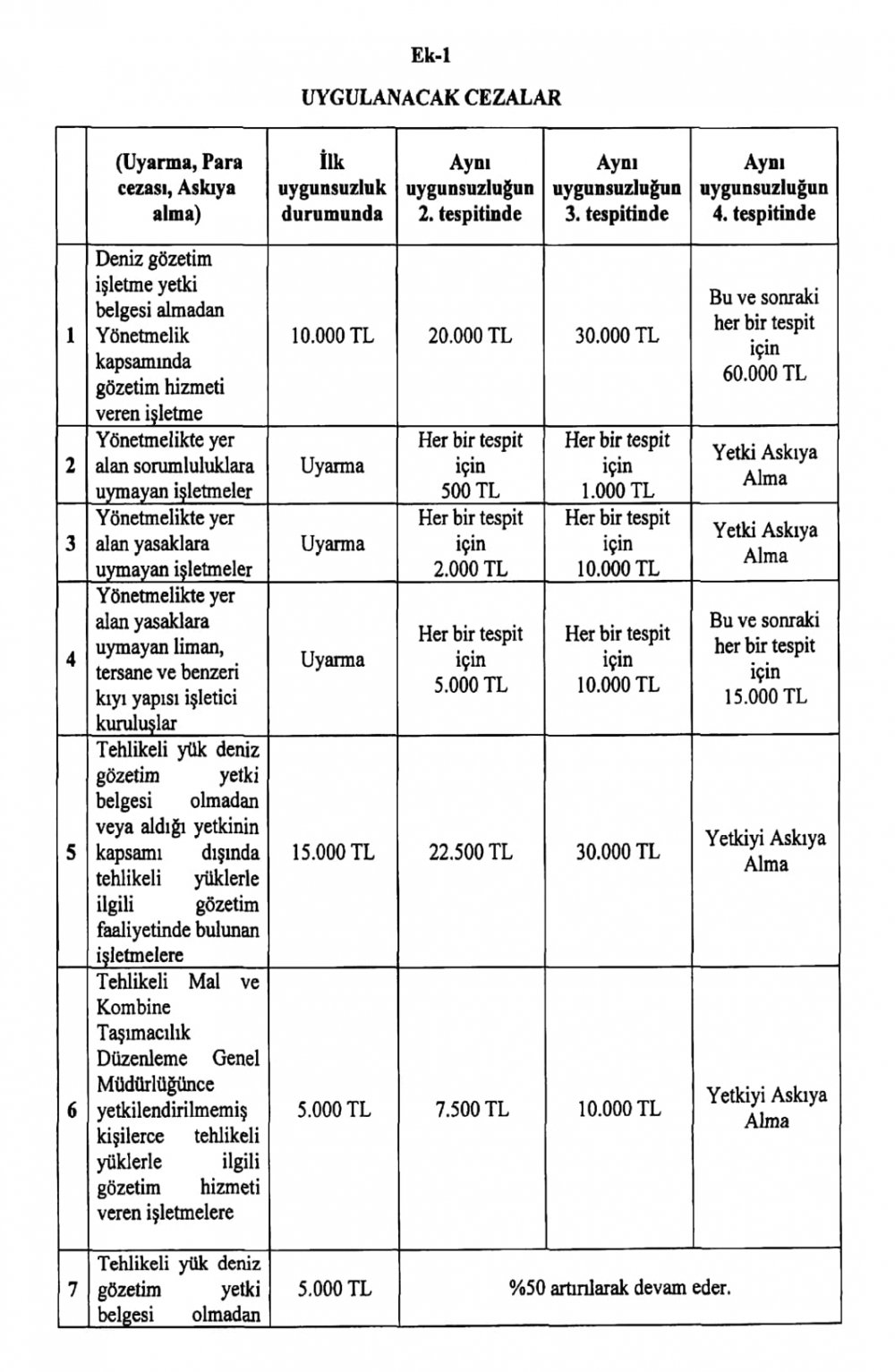 MADDE 11 – (1) 8 inci veya 9 uncu madde hükümlerine aykırı hareket ettiği tespit edilenlere 655 sayılı Kanun Hükmünde Kararnamenin 28 inci maddesinin birinci fıkrasının (b) bendi gereğince Bakanlık tarafından Ek-1’deki tabloda belirtilen cezalardan eyleme karşılık gelen ceza uygulanır.
