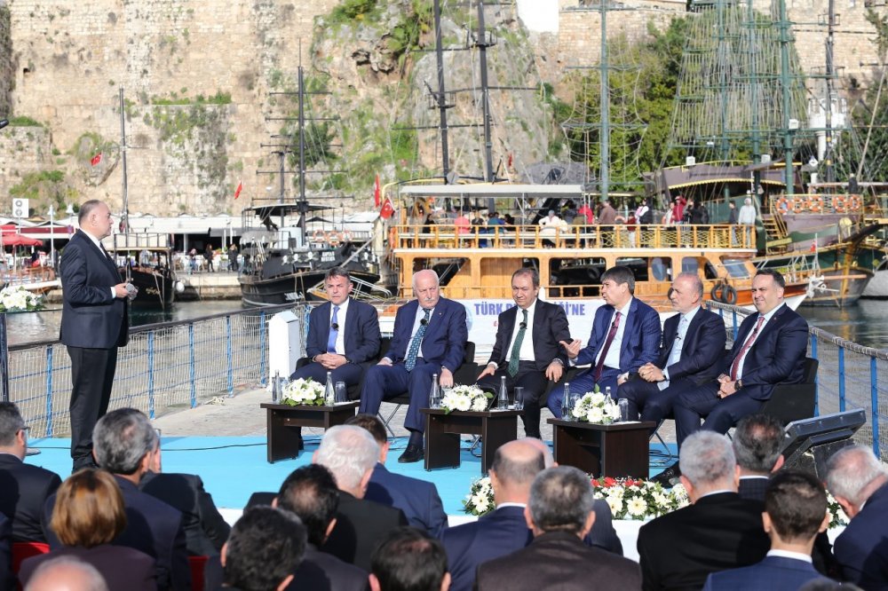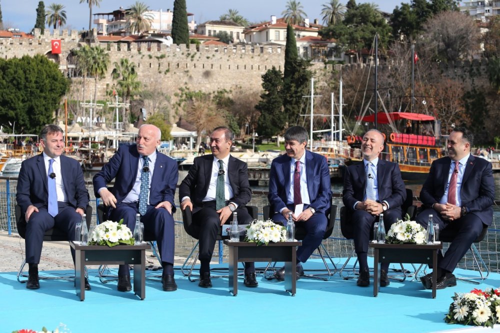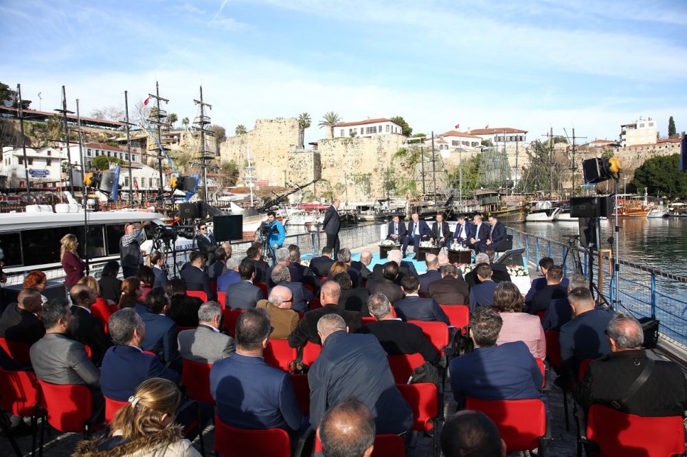 Antalya Büyükşehir Belediye Başkanı Menderes TÜREL “640 km sahil bandına sahip ancak marinalar konusunda zengin değiliz. Antalya’yı deniz ile barışık şehir haline getirmek için çalışıyoruz. Kruvaziyer liman projemiz şuan ihale aşamasında. Deniz taşımacılığında arz talep ters çalışıyor. Geçtiğimiz yıllarda Antalya, 200.000 turist ağırlamıştı; bu sayı, 50.000’lere düştü. Bizim potansiyelimiz 1 milyon turist. Bu kruvaziyer limanla talebi yaratacağız” şeklinde konuştu.