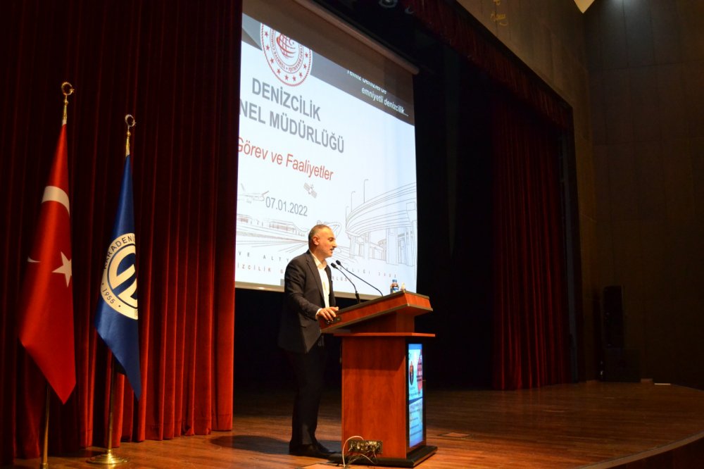 Denizcilik sektörüne dair birçok gelişmeyi ve projeyi öğrencilerle paylaşarak ülkemizin uluslararası konumunun ve son yıllarda ulaşmış olduğumuz başarıların altını çizdi. 2021 yılının Türk bayrak gemiler için tüm zamanların en düşük gemi tutulma vakasının yaşandığı yıl olduğunu ve bunun sıkı takım çalışmasıyla gerçekleştiğini vurguladı.