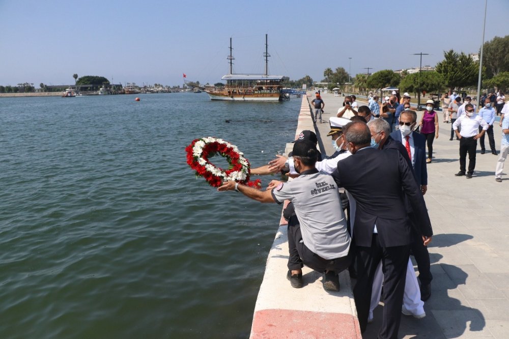 Meydandaki törenin ardından Refah Şehitleri Anıtı önüne kadar yürüyen protokol üyeleri ve katılımcılar, şehitler anısına denize çelenk bıraktı. Çelenk bırakmanın ardından Sahil Güvenlik Akdeniz Bölge Komutanlığı ve Büyükşehir Belediyesine bağlı botlar, kısa bir gösteri yaptı.