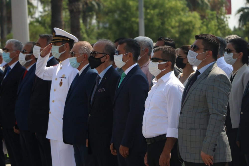 Mersin'de 1 Temmuz Denizcilik ve Kabotaj Bayramının 95'inci yıl dönümü, korona virüs önlemleri çerçevesinde, sınırlı katılım ve sade bir törenle kutlandı.