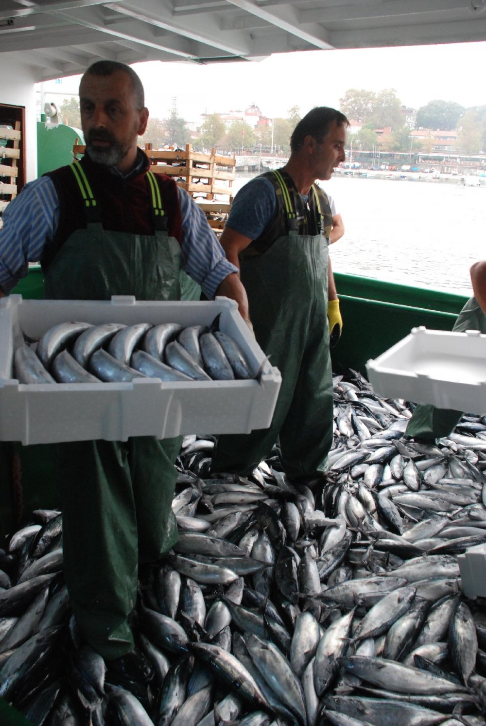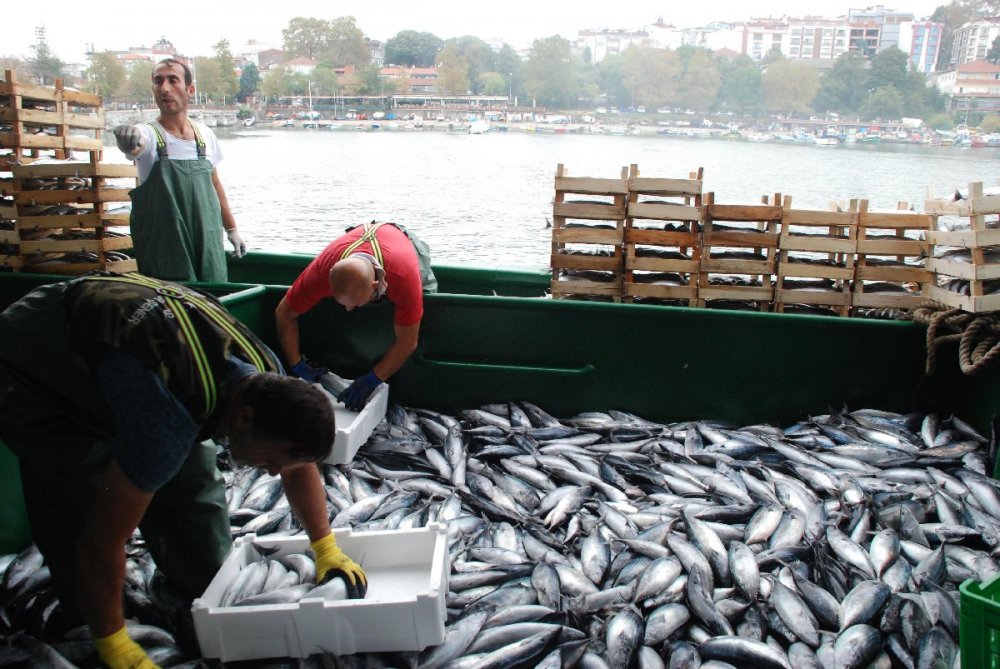 Bu durum hem tekne sahiplerinin yüzünü güldürdü hem de balıkçı tayfasının. Öte yandan palamutun bol miktarda yakalanmasına rağmen fiyatının düşmemesi kafaları karıştırdı. İstanbul’da balık tezgahlarında palamutun tanesi halen 15 TL’den satılıyor… Akçakoca’da Karadeniz’e açılan balıkçılar, balıkçı barınağına balıkla döndü. 30 metre uzunluğundaki teknesi ve 22 tayfası ile denize açılan balıkçı Mustafa Taşçı, 30 ton palamutla döndü. Balıkçı barınağına dönüldüğünde palamutlar kasalara yüklenerek araçlara dolduruldu.