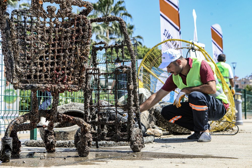 Mersin Büyükşehir Belediyesi Çevre Koruma ve Kontrol Dairesi Başkanlığınca, 'Çevre Koruma Haftası' kapsamında farkındalığı artırmak ve deniz kirliliğine dikkat çekmek için marinada dalış etkinliği gerçekleştirildi. Akdeniz Sahil Güvenlik Komutanlığı'na bağlı balık adamlar ile deniz polisi ve itfaiyenin dalgıç ekiplerinin katıldığı etkinlikte dalış yapan ekipler, alışveriş sepetinden sandalyeye, cam şişelerden poşetlere kadar yüzlerce atığı denizden çıkardı. Atıklar, vatandaşlar görebilsin diye sergilenmek üzere belirlenen alana bırakılırken, denizden çıkanlar 'bu kadarına da pes' dedirtti.