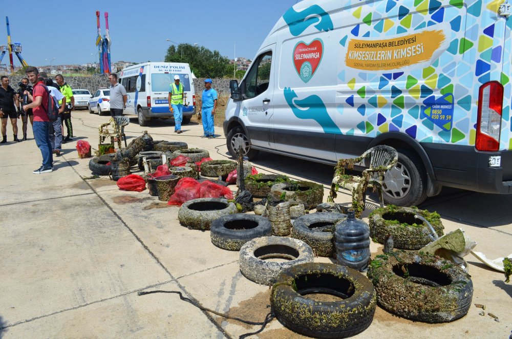 Süleymanpaşa Belediyesince düzenlenen etkinlikte denizde temizlik yapan dalgıçlar, çeşitli atık malzemeleri kıyıya çıkardı. Marmara Denizi'nin dibinde yapılan temizlikte 15 adet otomobil lastiği, su şişesi, alkol şişeleri, tabure, sandalye, metrelerce ip, musluk, çapa, yemek tabağı, lavabo, kupa gibi onlarca malzeme görenleri hayrete düşürdü.