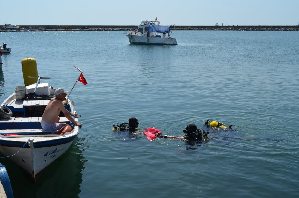 Süleymanpaşa Belediyesince sahil dolgu alanda farkındalık oluşturmak amacıyla düzenlenen programda belediye ve İl Emniyet Müdürlüğü Deniz Limanı Şube Müdürlüğü Sualtı Grup Amirliğinde görevli 6 dalgıç, deniz dibi temizliği yaptı.