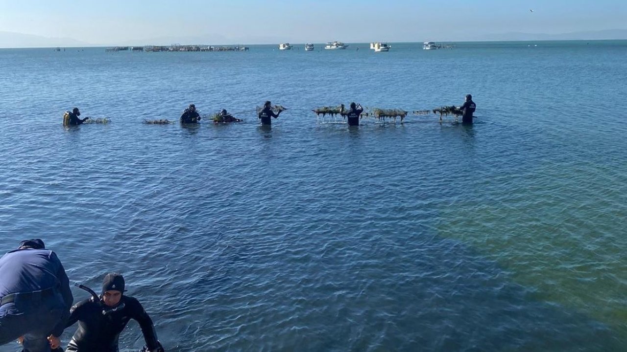Yapılan temizlik çalışmasında dalgıçlar; denizden hayalet ağ, kafes ve çeşitli atıklar çıkardı.