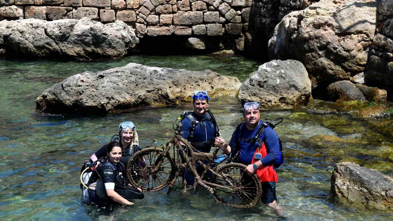 Konuşmaların ardından Başkan Uysal, Muratpaşa Belediyesinin su altı temizlik ekibiyle tüpleri sırtlandı, ekipmanların kontrol etti ve temizlik için tarihi Kaleiçi Yat Limanı’na daldı. Dalışta deniz dibinden misinalar, birbirine bağlı iğneler, ucunda kurşun ağırlığı bulunan ağlar, balık tutmak için kullanılan sepetler çıkartıldı. Ekip bir bisikleti de denizden karaya aldı. Bisikletin tamamen küflendiği görüldü.