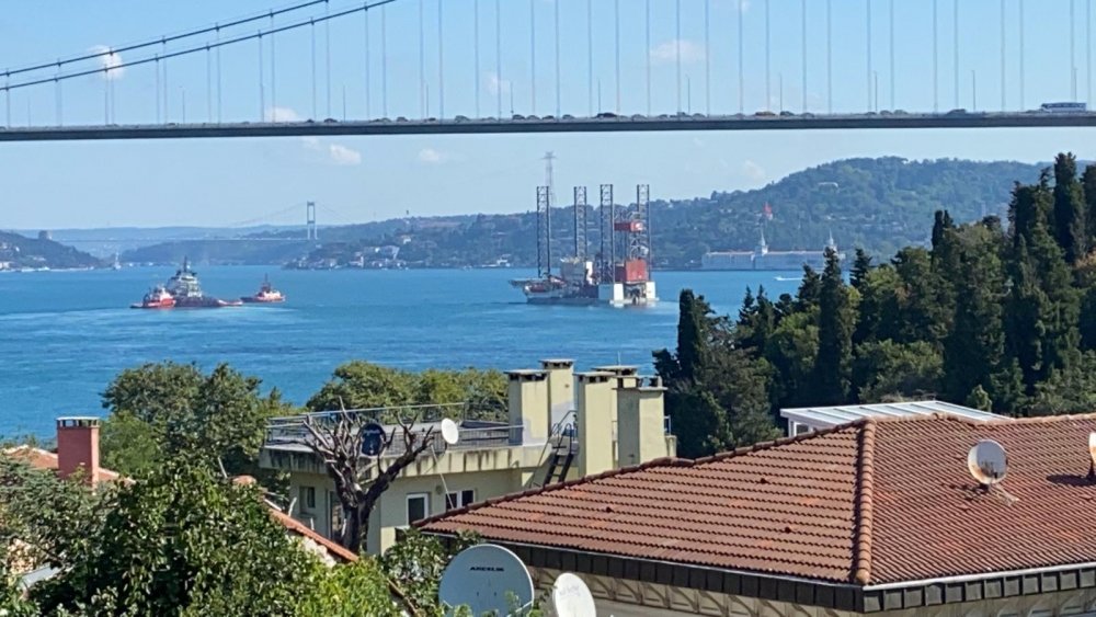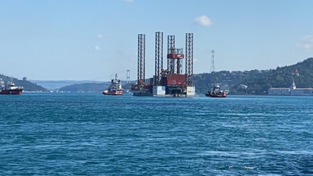 Panama bayraklı dev petrol plaftormu ’GPS Saturn", İstanbul Boğazı’ndan geçiyor.