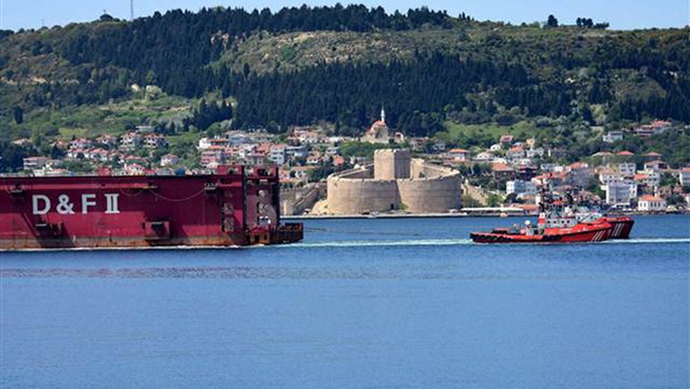 Dev Yüzer Havuz Çanakkale Boğazı'ndan GeçtiGemilerin bakım ve onarımında kullanılmak üzere Singapur'dan Yalova'ya götürülen, 230 metre uzunluğundaki dev yüzer havuz, Çanakkale Boğazı'ndan geçiş yaparken 4 römorkörle çekildi.