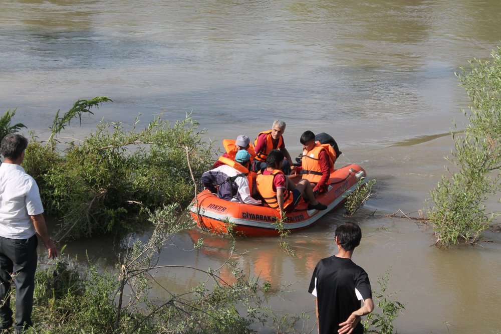 Dicle Nehri'nin ortasında mahsur kalan 7 çocuğu ekipler kurtardı