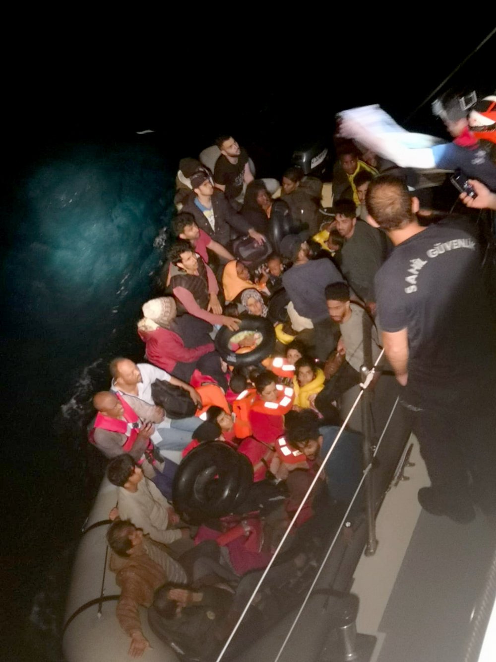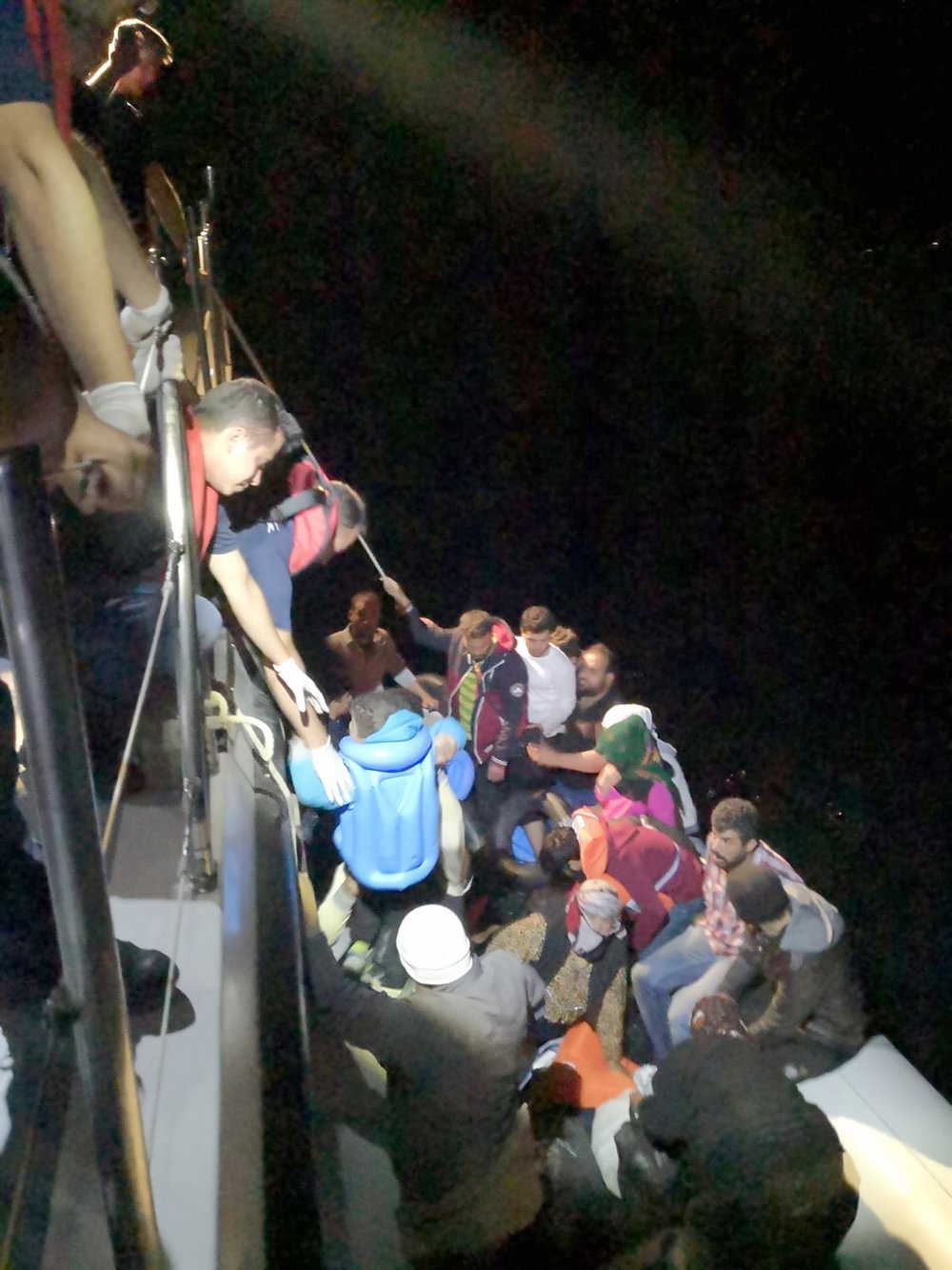 Alınan bilgiye göre, bölgede devriye görevi yürüten Sahil Güvenlik Güney ege Grup Komutanlığına bağlı botlar, Tekağaç Burnu açıklarında lastik botların önlerini kesti. Lastik botta yapılan aramada toplam 41 Suriye uyruklu düzensiz göçmen yakalandı.