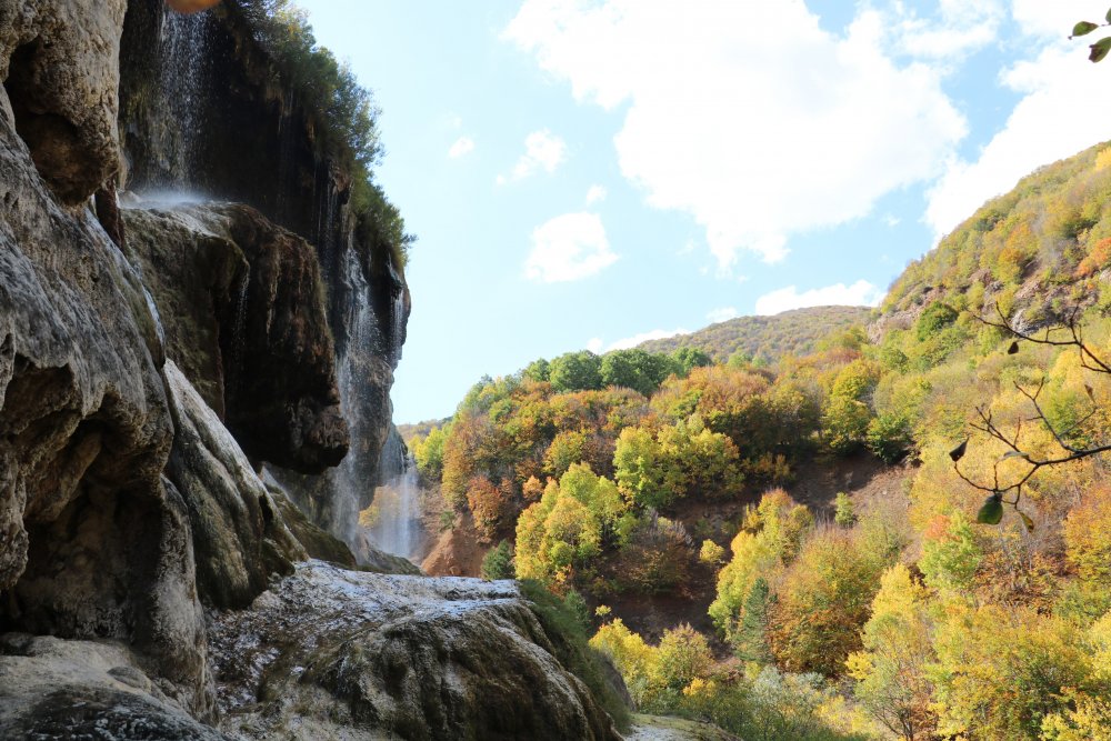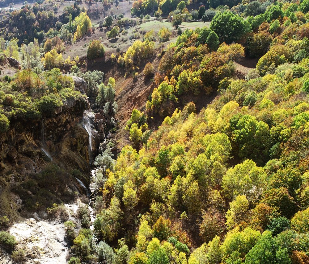 Dipsizgöl şelalesi Hazan mevsiminde güzelliği ile ziyaretçilerini büyülüyor.