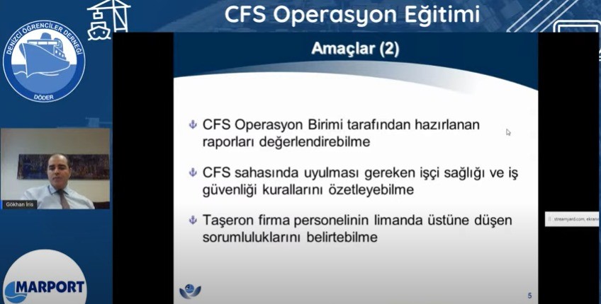 Bu yıl üçüncüsü düzenlenen Limancılık Temel Bilgiler Eğitimi geçtiğimiz yıllarda yüz yüze ve sınırlı bir kontenjan ile yapılırken bu sene pandemi sürecinden dolayı online ortam üzerinden gerçekleşti. Kontenjan sınırı bulunmayan eğitimde, tüm öğrenciler faydalanabilme imkanı buldu. Eğitimin ilk gününde İş Geliştirme ve Operasyonel Eğitimler Yöneticisi Tolga Özbey öğrenciler ile beraberdi.