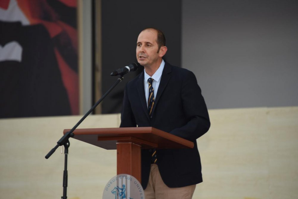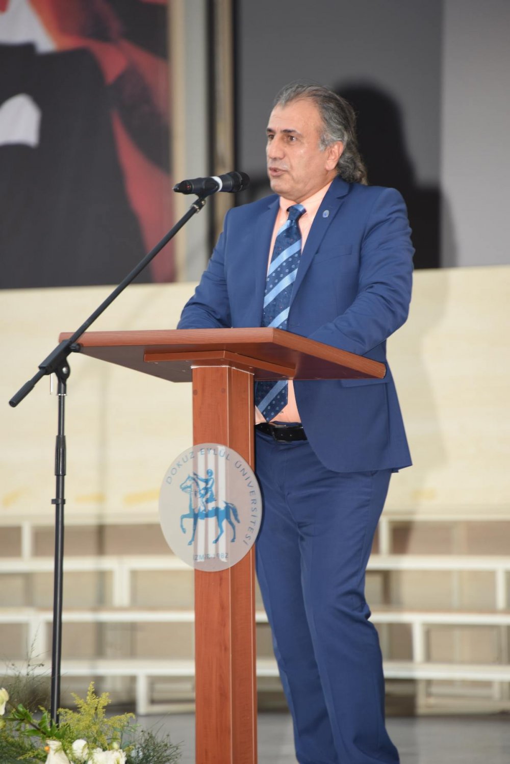 Dokuz Eylül Üniversitesi Rektörü Prof. Dr. Mehmet FÜZÜN, Dokuz Eylül Üniversitesi’nin birçok özelliği olduğunu ancak denizci üniversite olma özelliğinin her zaman öne çıktığını belirtti. Denizcilik Fakültesi’nin ülkede denizcilik eğitimi veren kurumların başlıcaları arasında yer aldığını vurgulayan Rektör Prof. Dr. FÜZÜN, mezunlara adalet, çalışkanlık ve hoşgörü duygularını hiçbir zaman yitirmemeleri gerektiğini, Atatürk’ün temel ilkelerine sürekli bağlı kalmayı, bu bağlılığın gereği olarak barışçı olmayı, devrimci olmayı ve daima gelişimden yana olmayı, demokratik laik hukuk devletine ilelebet sahip çıkmayı, Türkiye Cumhuriyeti Devleti’ni yaşatma azmini asla kaybetmemeyi öğütlerken mezunlara sonsuz başarılar diledi. Rektör Prof. Dr. FÜZÜN, mezunların gelişmesindeki katkıları sebebiyle ailelerine ve Denizcilik Fakültesi’nin mensuplarına teşekkür ederek sözlerine son verdi.