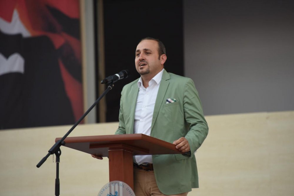 Törende ilk olarak Fakülte Birincisi Dokuz Eylül Üniversitesi Denizcilik Fakültesi Gemi Makineleri İşletme Mühendisliği Bölümü mezunu Necdet ERİŞ konuştu. ERİŞ’in konuşmasının ardından Dokuz Eylül Üniversitesi Denizcilik Fakültesi Mezunlar Derneği Başkanı Osman BİLGİN mezunlara öğütlerle dolu olan konuşmasını gerçekleştirdi.