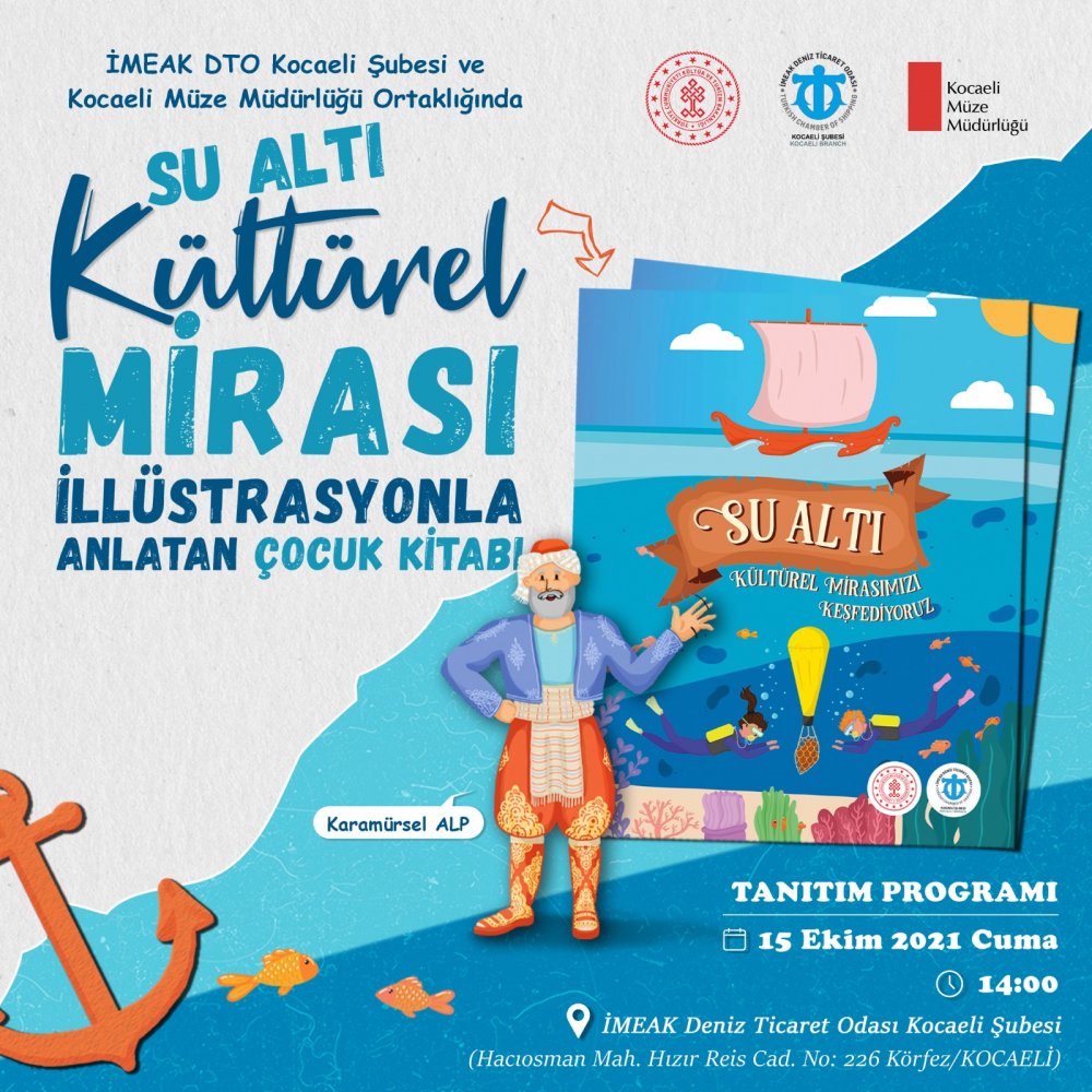 İMEAK DTO Kocaeli Şubesi ve Kocaeli İl Kültür ve Turizm Müdürlüğü’ne bağlı Müze Müdürlüğü işbirliğiyle çocuklara, geçmişten günümüze su altı kültürel mirasımızı aktaran, denizciliğin gelişimini anlatan, "Su Altı Kültürel Mirasımızı Keşfediyoruz" kitabı hazırlandı. İlimiz su altı zenginliklerini gün yüzüne çıkaran, bu alanda çocuklar için özel bir eser olma özelliği de taşıyan kitabın tanıtımı 15 Ekim Cuma günü Saat 14.00'te, İMEAK DTO Kocaeli Şubesi'nde düzenlenecek kokteyl ile gerçekleşecek. İMEAK DTO Kocaeli Şubesi, geçen 1 Temmuz Kabotaj Bayramı’nda da Cumhurbaşkanlığı Osmanlı Arşiv Araştırmacısı Süreyya Atilla Sağlamçubukçu ve Tarihçi Yazar Volkan Şenel'in hazırladığı “Osmanlı Arşiv Belgelerinde Kocaeli Denizcilik Tarihi” isimli kitabı tanıtmış ve büyük beğeni toplamıştı.