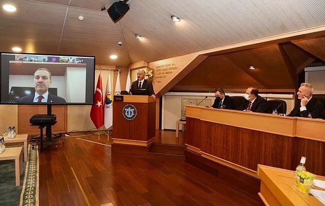 Toplantıda DTO Meclis Başkanı Salih Zeki Çakır, Deniz Ticareti Eski Genel Müdürü Cemalettein Şevli, Kıyı Emniyeti Eski Genel Müdürü Hızırreis Deniz de hazır bulundu.